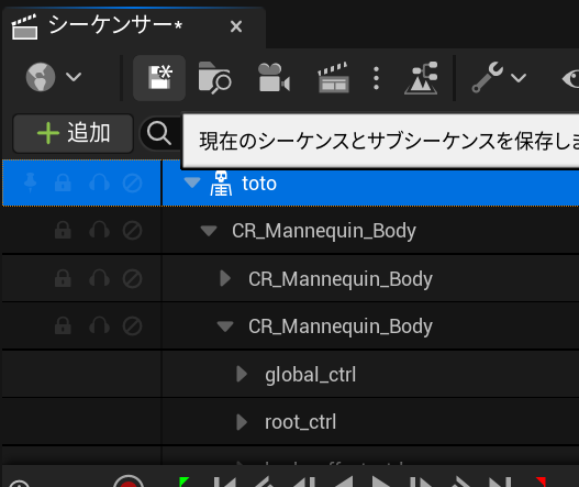 【シーケンサーにアクタ・アニメーション・コントロールリグを追加する】