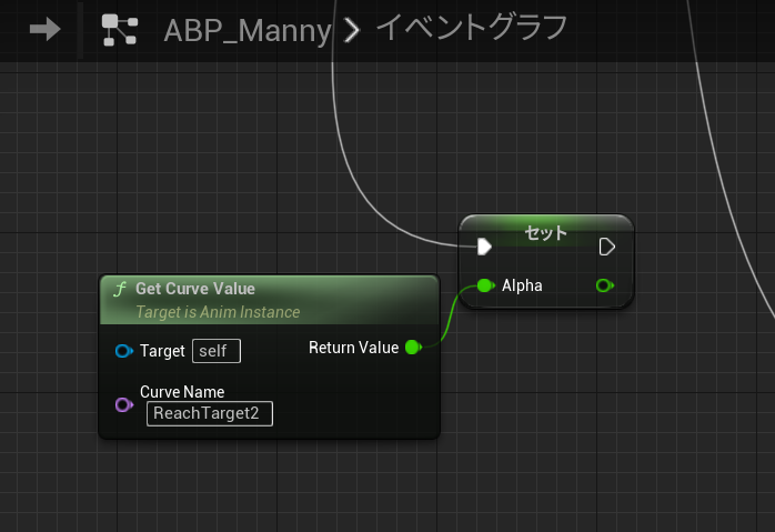 手のボーン位置とアニメモンタージュのカーブ値を入力ピンに入れておきます。
